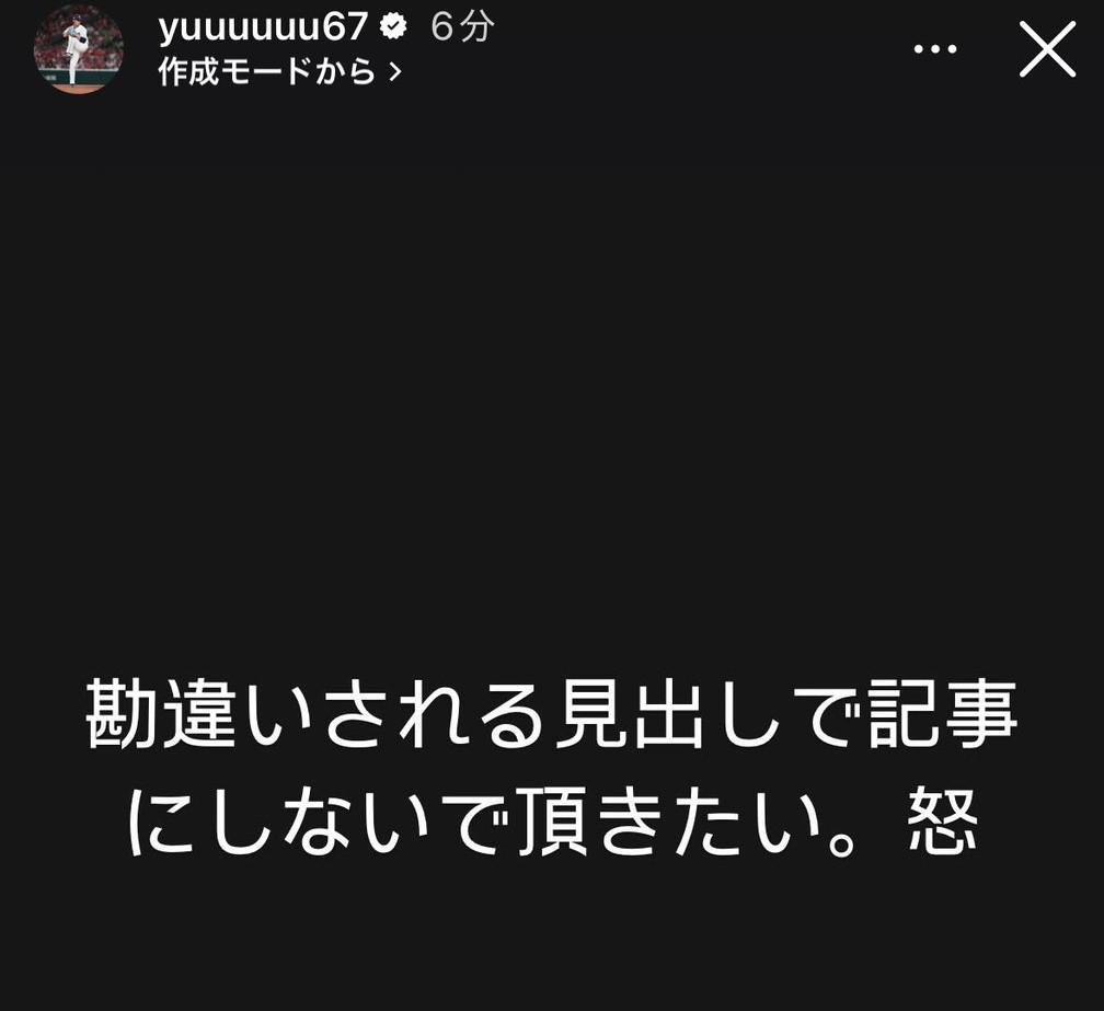 元カープ中村祐太、怒る「勘違いされる見出しで記事にしないで頂きたい。怒」