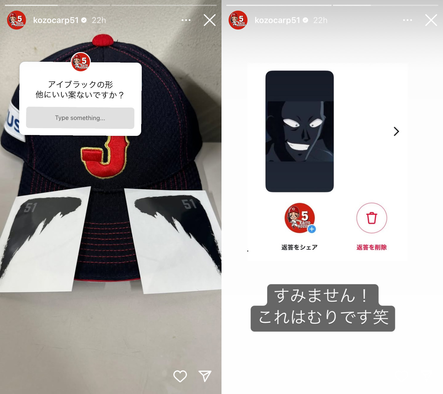 カープ小園海斗が『アイブラックの新デザイン』募集!コナンの犯人風はNGと画像UP