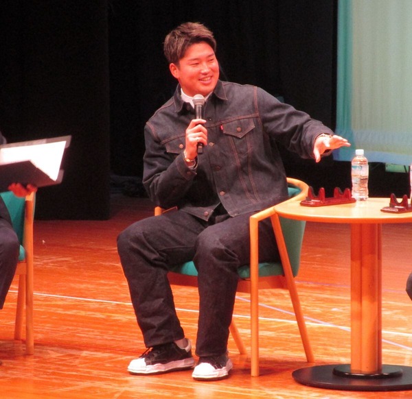 質問コーナーで野球少年から「これからの野球人生で何か目標にしていることはありますか?」と問われると「アメリカで大谷選手(ドジャース)とホームラン王を争うのが目標です」と答え、会場を盛り上げた。