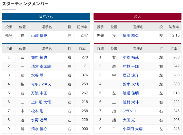 【日本ハムvs.楽天 8回戦 】1(三)郡司裕也 2(一)清宮幸太郎 3(左)水谷瞬 4(指)マルティネス