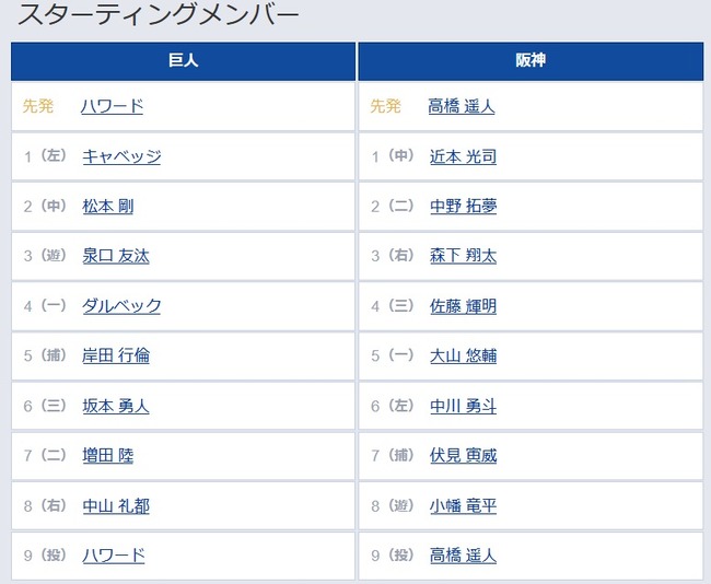[紹介元] なんじぇいスタジアム@なんJまとめ – 阪神タイガース 【巨人対阪神2回戦】7(二) 増田 陸 8(右) 中山 礼都