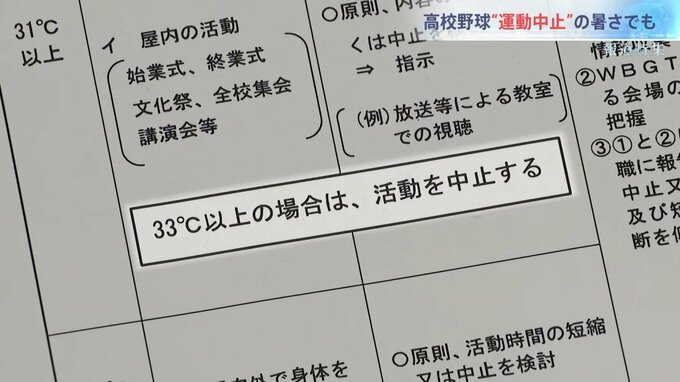 「WBGT(暑さ指数)が『33』を超えるというのは、運動中止しなきゃいけない数字なのかもしれない。ただ、大会運営の中では試合を消化していかないといけないので、休憩を複数回入れながら、生徒の様子を十分にこちらが観察しておかないといけない」
