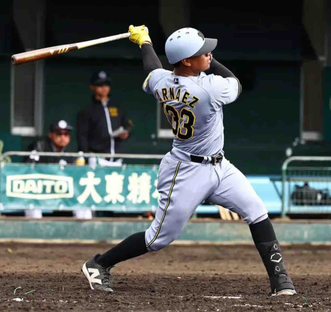 阪神育成新外国人のジーン・アルナエス内野手(22)が2試合連続の長打でアピールした。