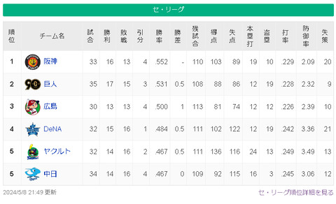 【5/8】神-巨=/広/-横-ヤ中【順位スレ】