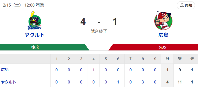 【試合結果】ヤクルト4-1広島 澤井に2ラン!赤羽古賀にタイムリー!