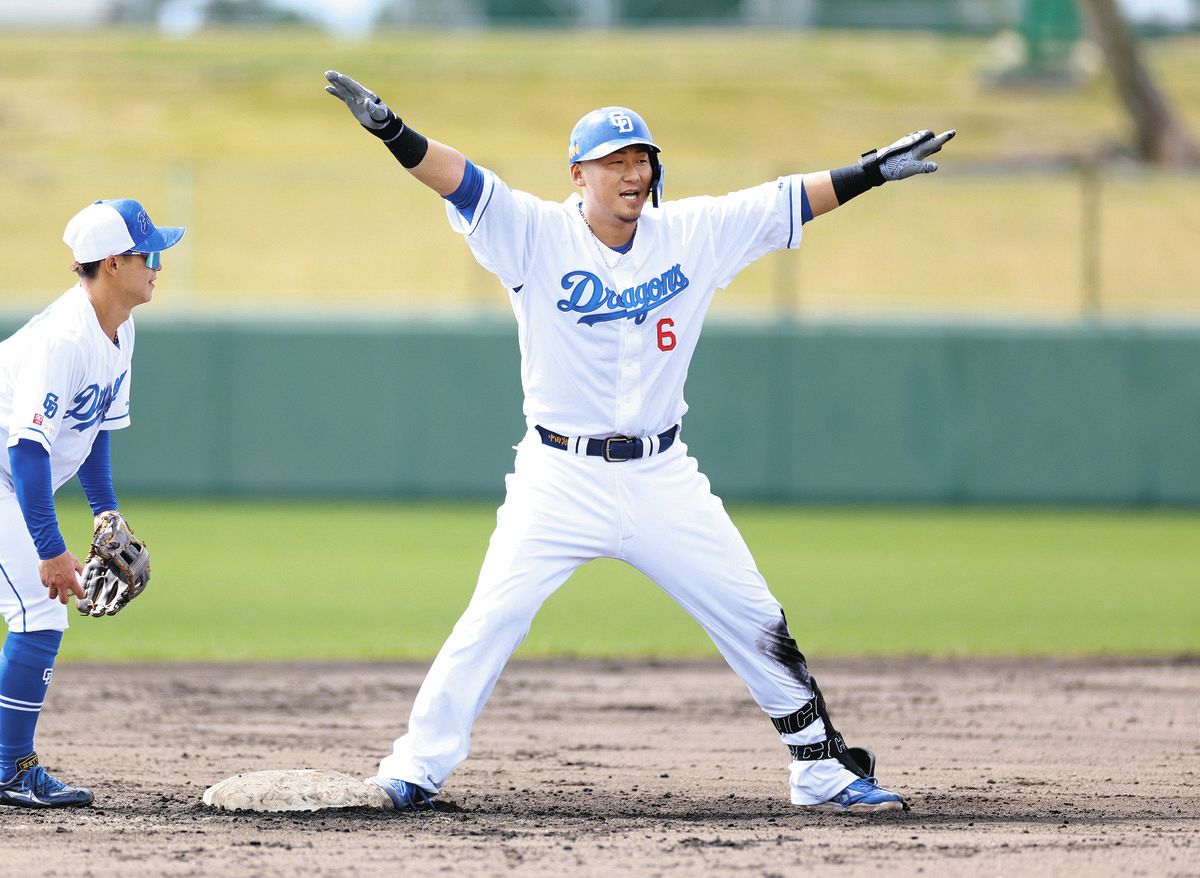 沖縄らしい日差しが差し込む中、背番号6のショータイムに集まった竜党が沸いた。打って、走って、守る。「いい感じで動けていたと思うよ」。中田がダイヤモンドを駆け回った。