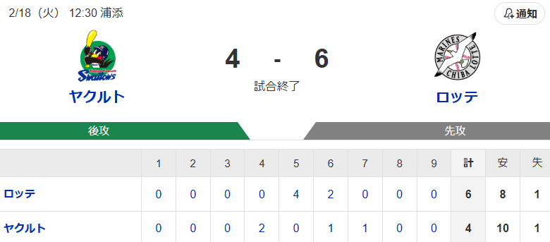 【試合結果】ヤクルト4-6千葉ロッテ 矢崎が2回6失点 赤羽がタイムリー含むマルチ! スポンサーリンク 東京ヤクルトスワローズ 2025/02/18 21:13 【試合結果】ヤクルト4-6千葉ロッテ 矢崎が2回6失点 赤羽がタイムリー含むマルチ! 217: 名無しさん@おーぷん 25/02/18(火) 15:27:41 ID:Hp.sy.L13 試合終了ヤクルトーロッテは4-6でロッテの勝ち 続きを読む