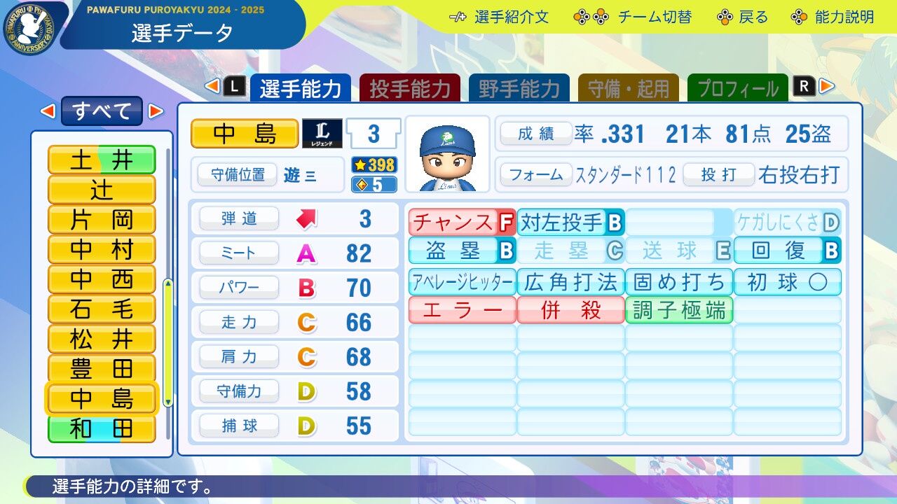 パワプロ2024の西武のレジェンドチームに収録されている