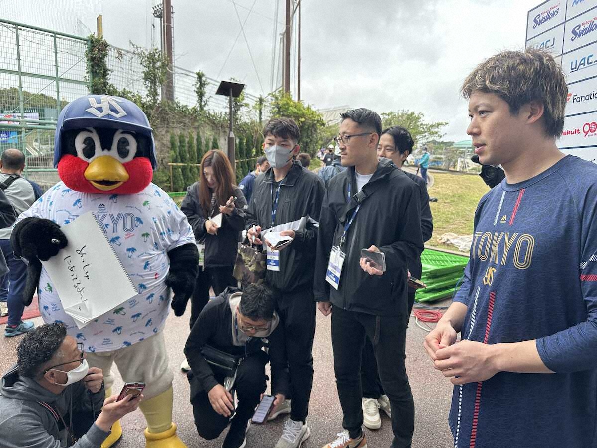 つば九郎は今月1日に沖縄・浦添で始まった1軍キャンプに同行していた。髪に金色のメッシュを入れた山田の囲み取材に乱入し「めっしゅにあってるよ~!」と、得意のフリップ芸を披露。関係者によると、担当者は4日に沖縄から帰京する際に空港の搭乗口で倒れて心臓マッサージを受け、そのまま豊見城市内の病院に入院していた。高津監督ら親しい球団関係者も見舞いに訪れていたという。1度は回復の兆しを見せたが、16日に永眠した。