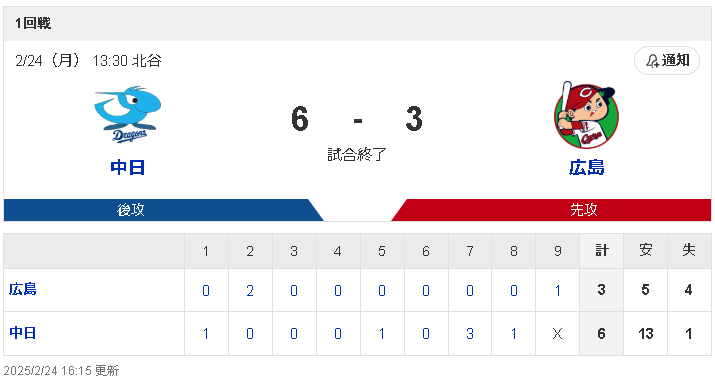 【2/24 OP戦 D6-3C】上林同点HR!宇佐見勝ち越し2塁打で逆転で井上監督OP戦初勝利!!