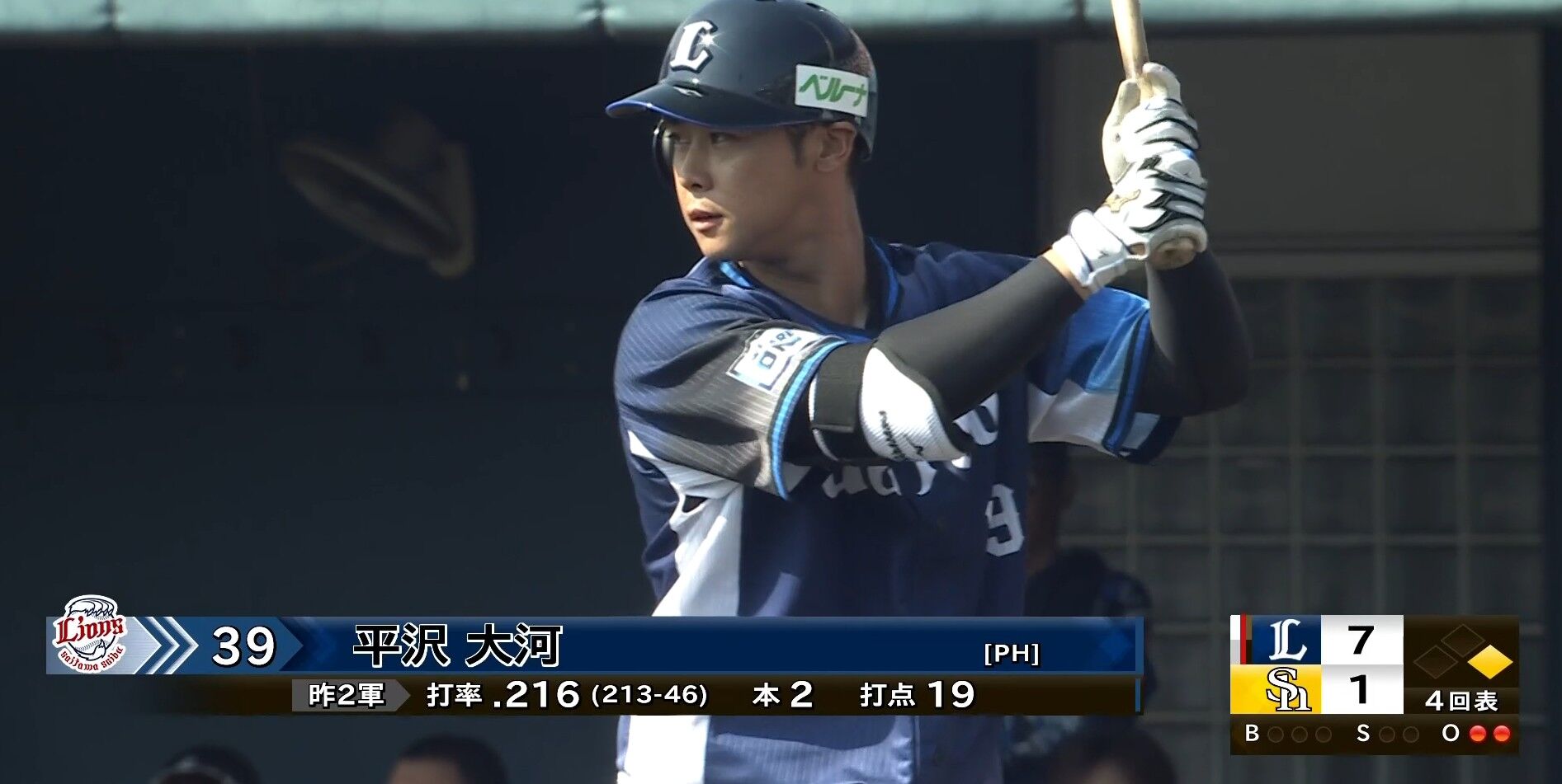 西武・平沢大河 打率 .714(7-5) 1本 OPS 2.303