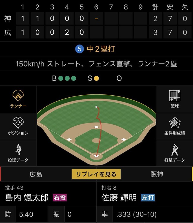 佐藤輝明 打率.364 OPS.914