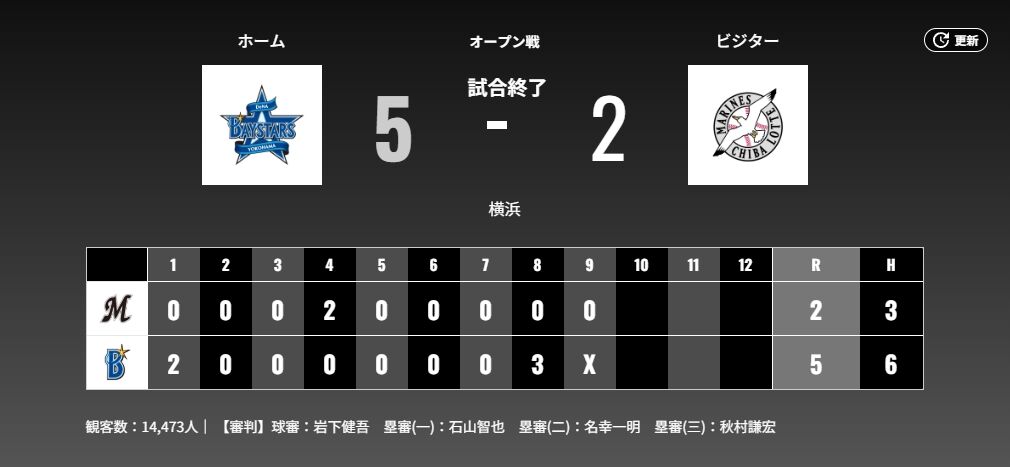 3月4日 DeNA5-2ロッテ 先発石川柊が3回2失点、愛斗の一発で追いつくも悪天候でリリーフ陣が制球乱れ終盤勝ち越し許し敗戦 スポンサーリンク 千葉ロッテマリーンズ 2025/03/04 16:43 3月4日 DeNA5-2ロッテ 先発石川柊が3回2失点、愛斗の一発で追いつくも悪天候でリリーフ陣が制球乱れ終盤勝ち越し許し敗戦 94: どうですか解説の名無しさん 2025/03/04(火) 16:15:46.06 ID:qrI5JoXK0 お疲れ、ケガ人が出なくて良かったよ 寒すぎ 続きを読む