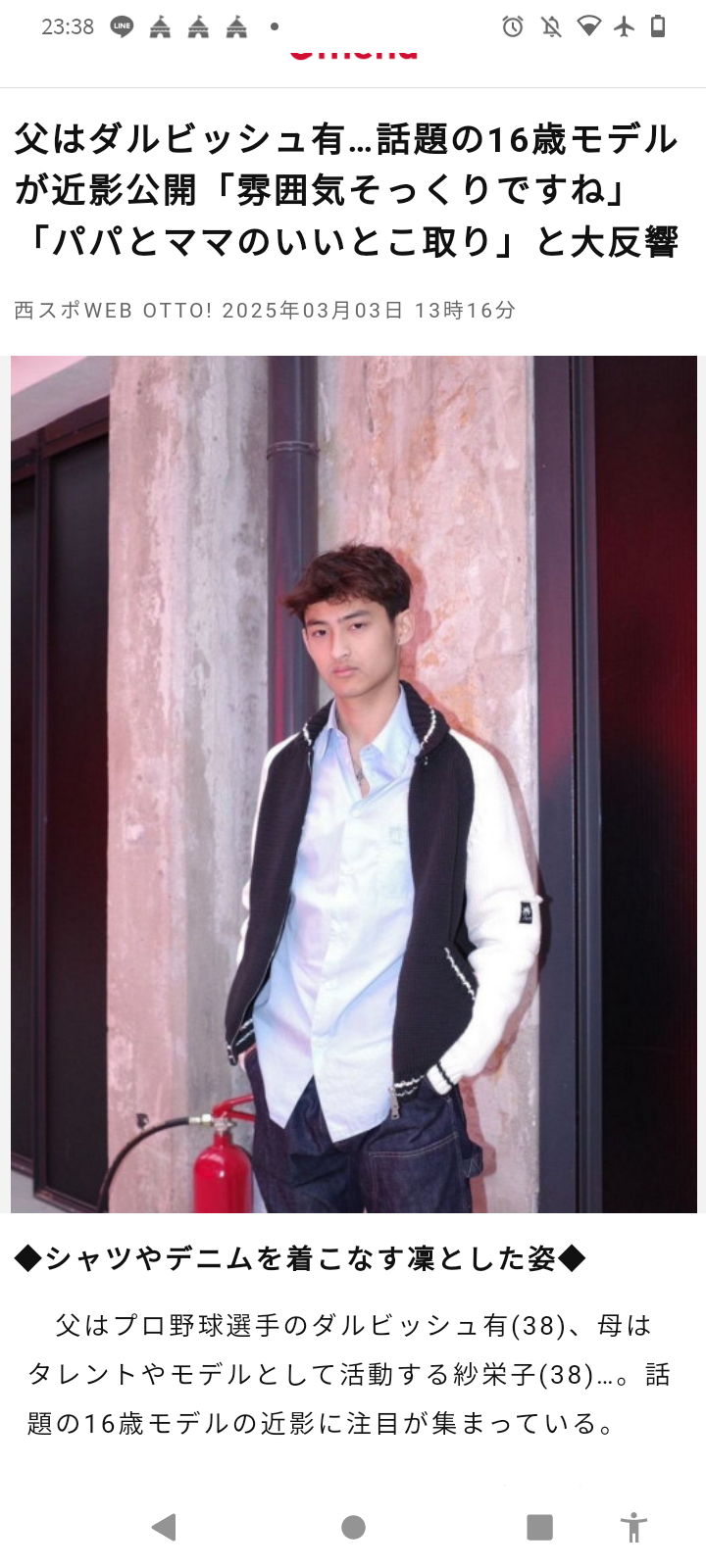 【画有】ダルビッシュと紗栄子の子供(16)がモデルデビュー スポンサーリンク MLB 2025/03/04 16:53 【画有】ダルビッシュと紗栄子の子供(16)がモデルデビュー 1: 2025/03/03(月) 23:39:59.43 ID:O1DSQBGRr イケメン2007年にダルビッシュ有と紗栄子は結婚し、08年に道休蓮が誕生した。12年にダルビッシュ有と紗栄子は離婚。道休蓮は1月23日に発売されたモード誌「SPUR」(集英社出版)の3月号でモデルデビューを果たした 続きを読む
