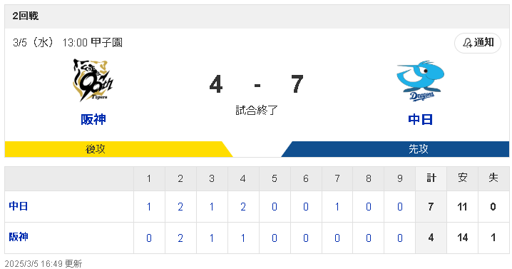 【3/5 OP戦 D7-4T】福永裕基が3安打2打点!樋口もタイムリーで一軍アピール!甲子園で525日ぶりの勝利!