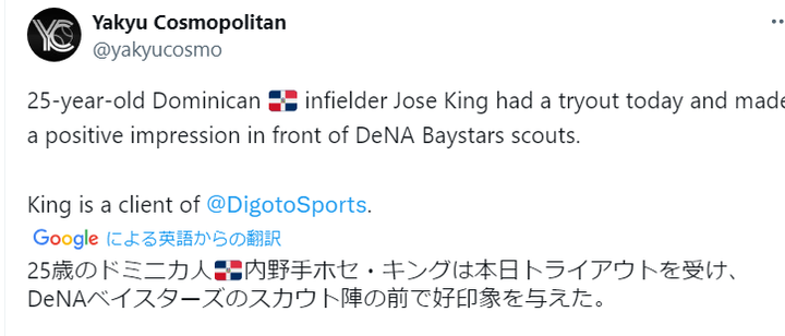 ドミニカ共和国出身のホセ・キング内野手(25) トライアウトを受け、DeNAスカウトの前でアピール