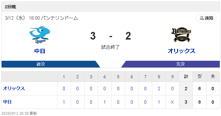 【3/12 OP戦 D3-2Bs】大野雄大5回完全投球!上林誠知が8回勝ち越しHRで連敗ストップ! スポンサーリンク 中日ドラゴンズ 2025/03/13 02:03 【3/12 OP戦 D3-2Bs】大野雄大5回完全投球!上林誠知が8回勝ち越しHRで連敗ストップ! (出典 D専) 20 どうですか解説の名無しさん 警備員[Lv.63][苗] (ワッチョイ bf20-MAiJ [240b:251:7c0:2900:*]) :2025/03/12(水) 20:31:00.55 ID:31WaI+I90 うほ 勝ったがね! 福永 かっこいい! 続きを読む