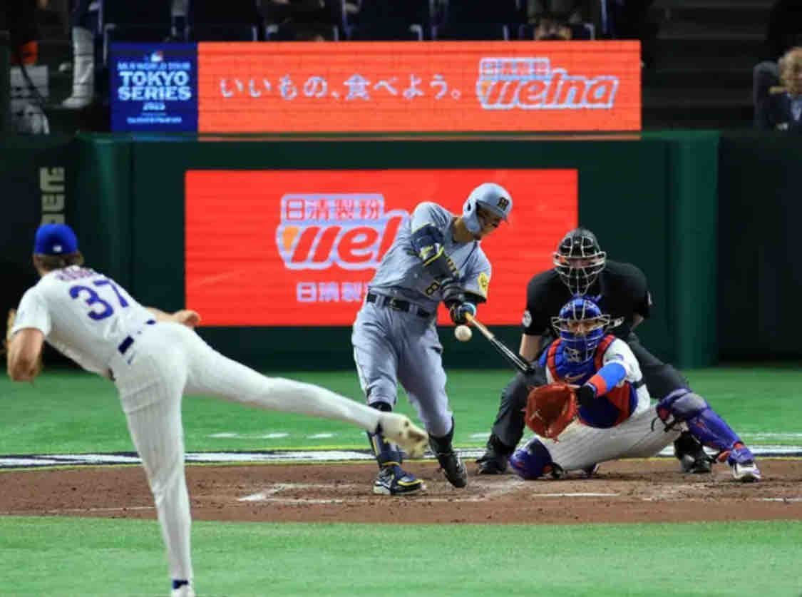 阪神佐藤輝明内野手(26)がメジャー相手にポテンシャルの高さの示した。