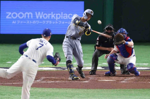 阪神・佐藤輝がスネル撃ちの先制3ラン!152キロ直球を右翼スタンドに運ぶ