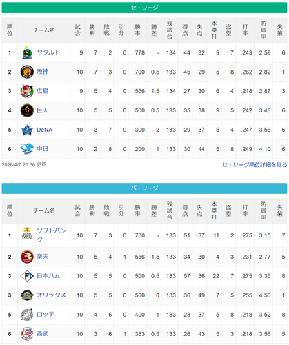 ●●●●●●中日 ●●●●横浜 読売 広島○ 阪神○○○○ 東京○○○○○