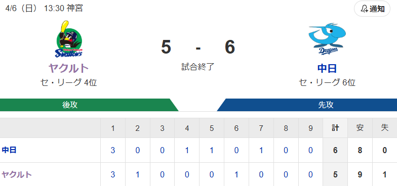 【試合結果】ヤクルト5-6中日 奥川5回5失点 山田2号3ラン 古賀1号 スポンサーリンク 東京ヤクルトスワローズ 2025/04/06 18:14 【試合結果】ヤクルト5-6中日 奥川5回5失点 山田2号3ラン 古賀1号 17: 名無しさん@おーぷん 25/04/06(日) 16:32:18 ID:rC7B 5回5失点だから奥川くんはゲーム作れなかったね 続きを読む
