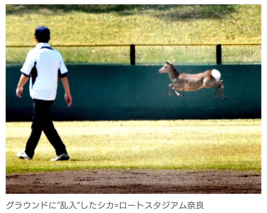 【高校野球】試合中のグランドにシカ2頭が乱入! 試合が中断… 奈良県予選会場のロートスタジアム奈良 スポンサーリンク 北海道日本ハムファイターズ 2025/04/13 15:13 【高校野球】試合中のグランドにシカ2頭が乱入! 試合が中断… 奈良県予選会場のロートスタジアム奈良 1: 名無しさん 2025/04/13(日) 01:56:56.95 ID:upHr0j7C9 外野芝生席からシカ“乱入”数分間試合が中断 – 高校野球春季近畿大会奈良県予選会場のロートスタジアム奈良 ロートスタジアム奈良で橿原と高取国際が対戦中、右翼後方、外野芝生席からシカ2頭がグラウンドに“乱入”し、試合が中断した。 シカがグラウンドに入ったのは四回、高取国際の攻撃中で、数分間にわたり駆け回った。 幸い大きなトラブルはなかったが、春の珍事にスタンドはどよめいた。 続きを読む