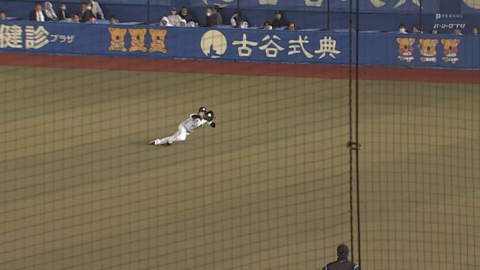 藤原恭大、超ファインプレー!ダイビングキャッチで先頭バッターの出塁許さず!