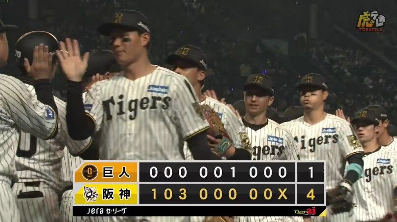 【阪神対巨人4回戦】阪神が4-1で巨人に勝利し5連勝!巨人戦は4戦全勝!佐藤輝が豪快キング8号3ラン!大山が先制打!村上4勝目!巨人は阪神に開幕4連敗で今季10敗目