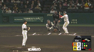 【阪神対巨人4回戦】巨人、6回1アウト三塁から岡本の内野ゴロの間に三塁ランナーが生還し1点を返す
