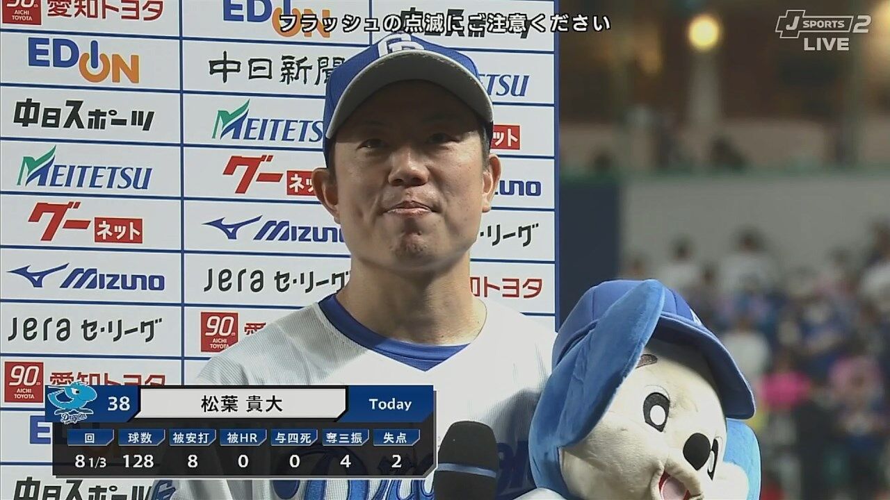 松葉貴大(34) 今日 8.1回 奪三振4 与四死球0 自責点2