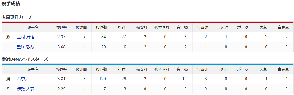 カープ、バウアーに完敗〝鬼門〟ハマスタ7連敗。玉村7回2安打2失点の好投も打線が2安打10三振と援護できず【広島1-2DeNA/試合結果】