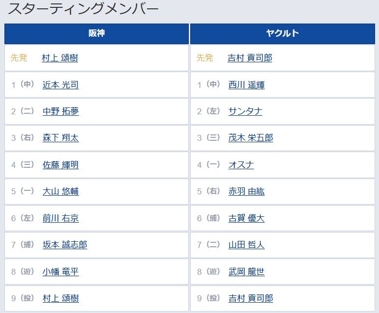 【阪神対ヤクルト5回戦】7(捕) 坂本 誠志郎 8(遊) 小幡 竜平