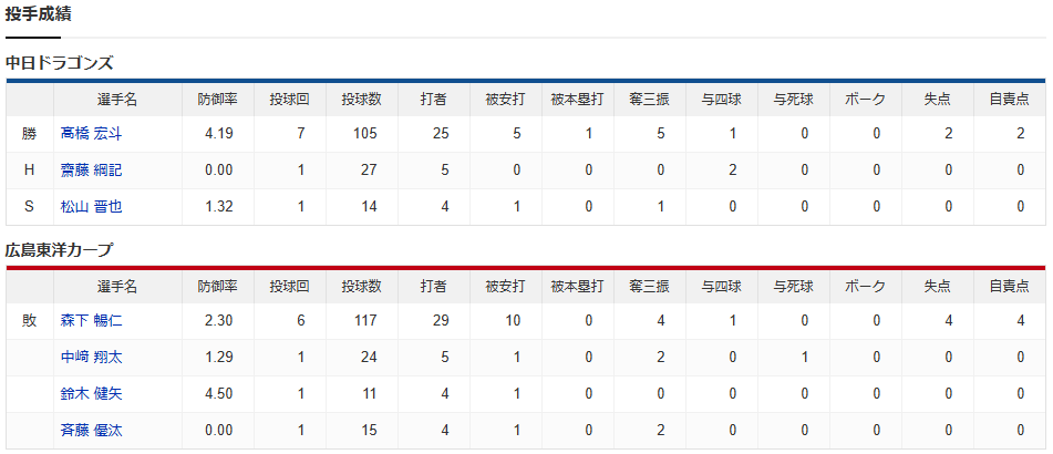 カープ新井政権ワースト7連敗。坂倉1号!ドラ1斉藤プロ初登板0封!森下6回4失点炎上で逆転負け【広島2-4中日/試合結果】