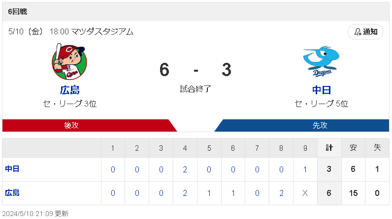 試合結果:nikkansports.com/yahooスポナビ野球