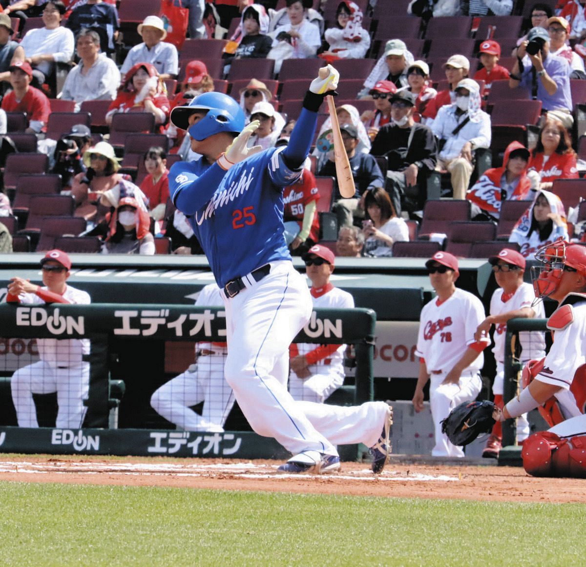 1号は出たが、直近5試合は19打数3安打と好調とは言えない。落合2軍監督は「中途半端に苦しんで、中途半端に(1軍に)上がっても仕方ない。まだ自信がなさそうに見える」と揺るぎない姿を求める。背番号25は上昇へ、「いろいろやっています。自分の打撃ができるように頑張ります」。久々の一発をきっかけにしたい。