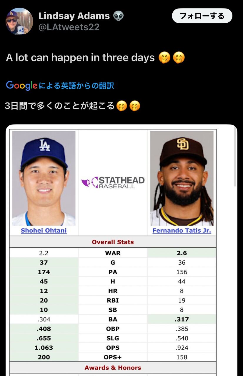 MLBファン「ナ・リーグのMVPランキングで大谷3位はおかしいだろ」ドジャースファン「….」