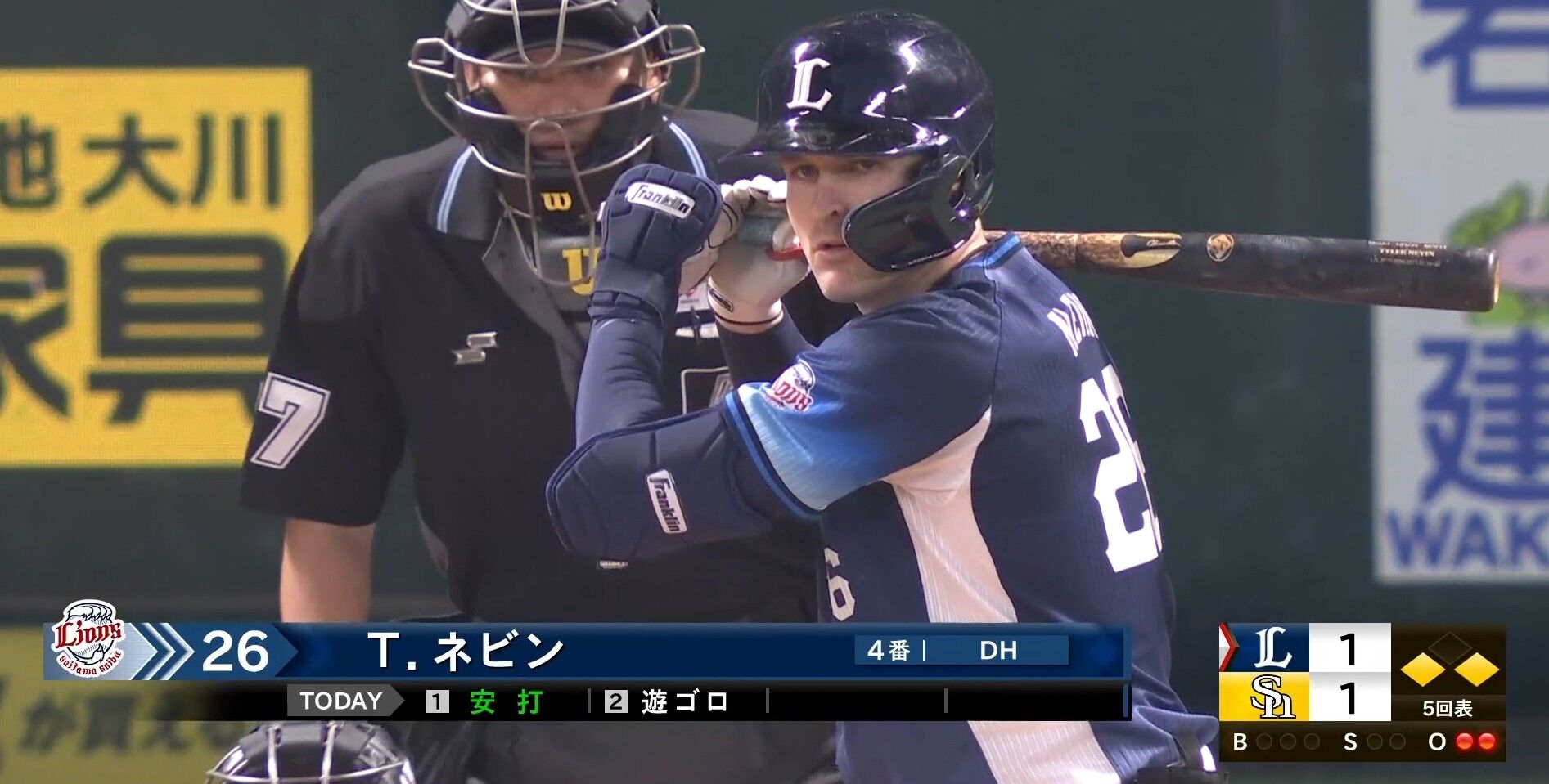 西武4番ネビン、勝ち越しのタイムリー!