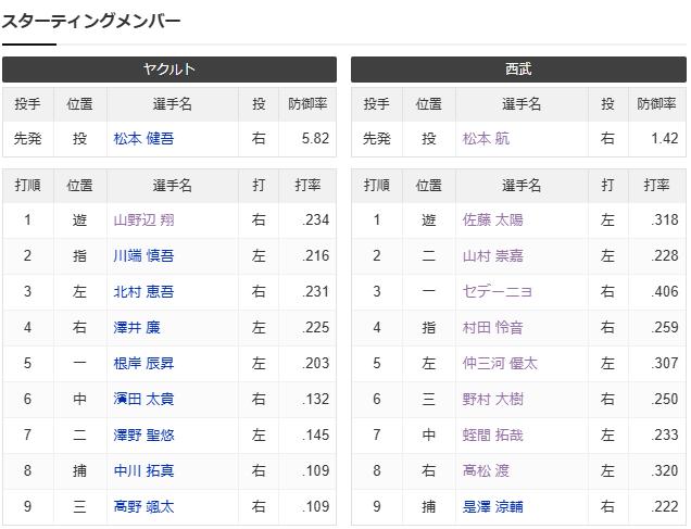 【試合実況】西武2軍スタメン 先発:松本航(2025.5.14)
