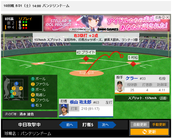 中川大勢マルティネスが昨日投げたから