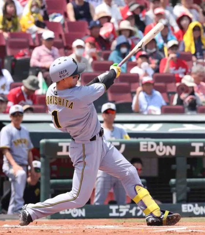 阪神・森下翔太外野手が初回に先制8号2ランを放った。先頭の近本が四球を選んで、1死二塁で迎えた打席。カウント1-1から広島先発・森の133キロチェンジアップにバットを振り抜くと、高々と舞い上がった打球は左翼スタンドの上段席に飛び込んだ。ダイヤモンドを一周すると、パンと手をたたいてホームイン。5月20日・巨人戦(甲子園)以来、11試合ぶりのアーチとなった。
