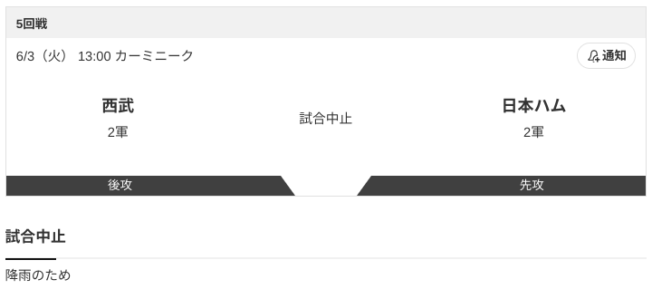 【2軍実況】西武vs.日本ハム /雨天のため中止