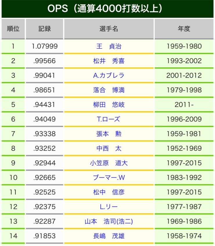 通算OPS 14位