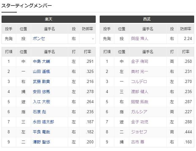 【試合実況】西武2軍スタメン 先発:與座(2024.6.29)