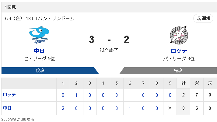 試合結果:nikkansports.com/yahooスポナビ野球