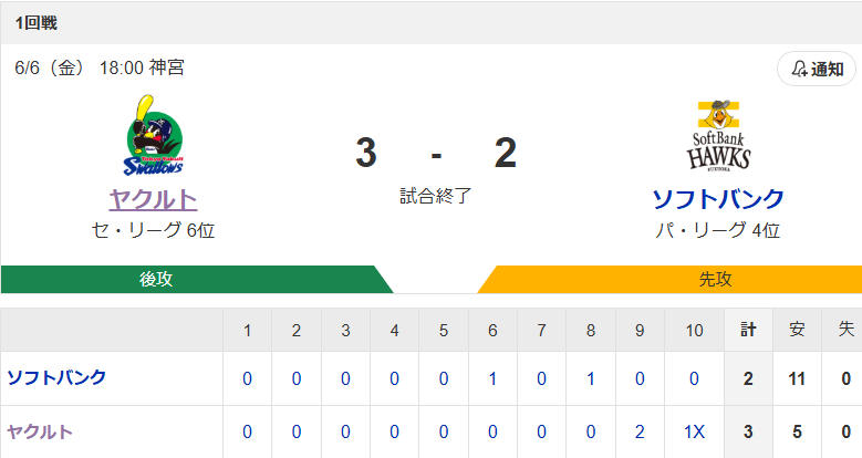 【試合結果】ヤクルト3☓-2ソフトバンク 延長10回武岡のサヨナラ弾!オスナ9回に同点3号2ラン! スポンサーリンク 東京ヤクルトスワローズ 2025/06/07 04:33 【試合結果】ヤクルト3☓-2ソフトバンク 延長10回武岡のサヨナラ弾!オスナ9回に同点3号2ラン! 560: ヤ3-2ソ(10回裏) 25/06/06(金) 21:20:26 ID:sNYM いい試合やったな 続きを読む
