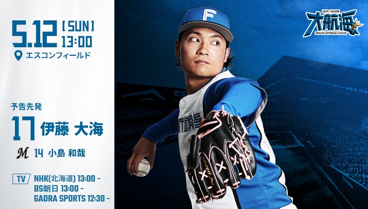 👉https://t.co/O64vnWIXll#lovefighters pic.twitter.com/i6jg0OQD1c— 北海道日本ハムファイターズ公式 (@FightersPR) May 11, 2024