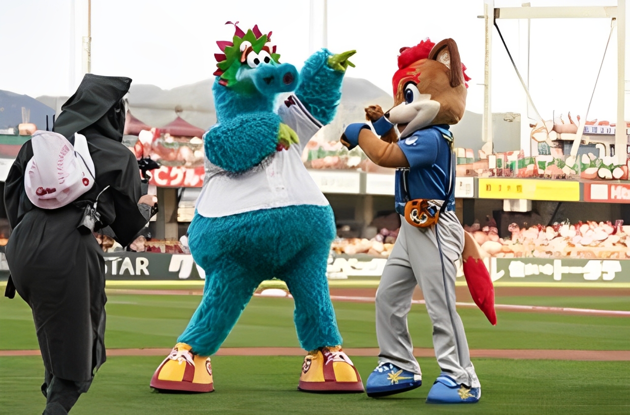 かわいらしいファイターズガールが、期間限定のフリフリ衣装で踊る中に乱入だ。13日に行われた交流戦、日本ハム-広島戦に登場したのは、広島のマスコット「スラィリー」。プロフィールによれば身長210センチ、体重100キロという巨体が、ノリノリで腕を揺らした。ちょっと意外な場所にきつねの耳を装着する芸の細かさも光る。