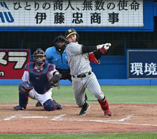 【阪神】野口恭佑「そら誰が見てもええやんか」デビュー戦で痛烈打球、いきなり岡田監督絶賛