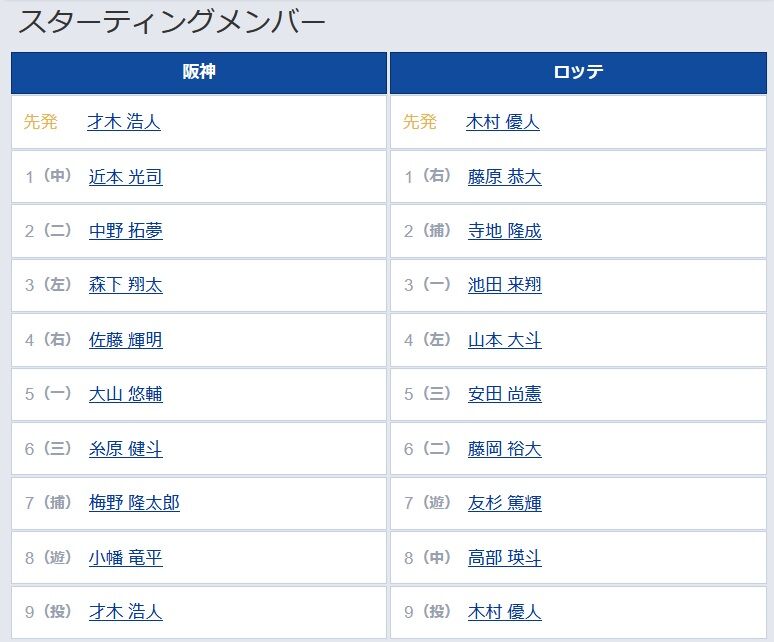 【阪神対ロッテ1回戦】4(右) 佐藤 輝明 6(三) 糸原 健斗