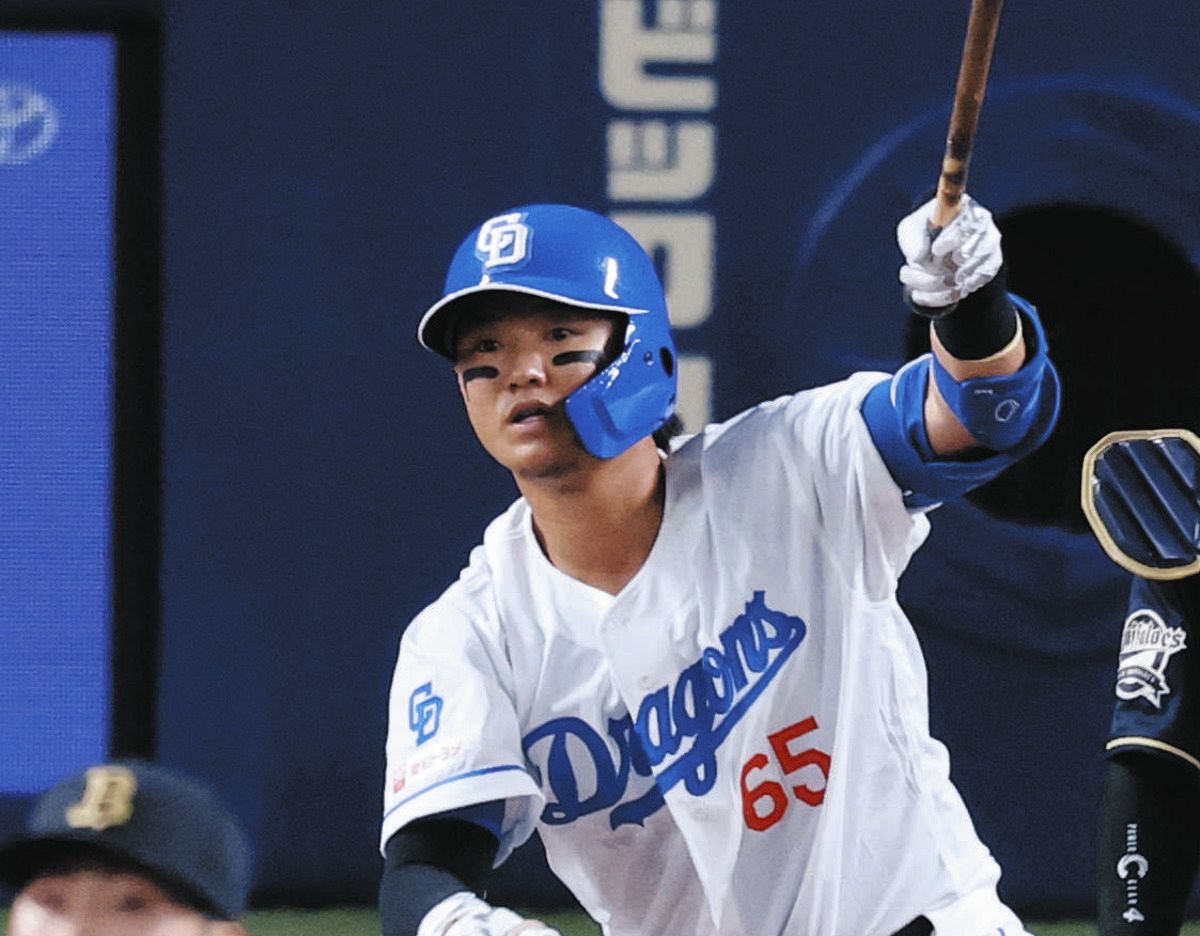 中日は4点を追う8回、「5番・三塁」で出場した佐藤龍世内野手が移籍後初安打を放ち、上林誠知外野手の適時打、村松開人内野手の中犠飛で2点差に追い上げた。